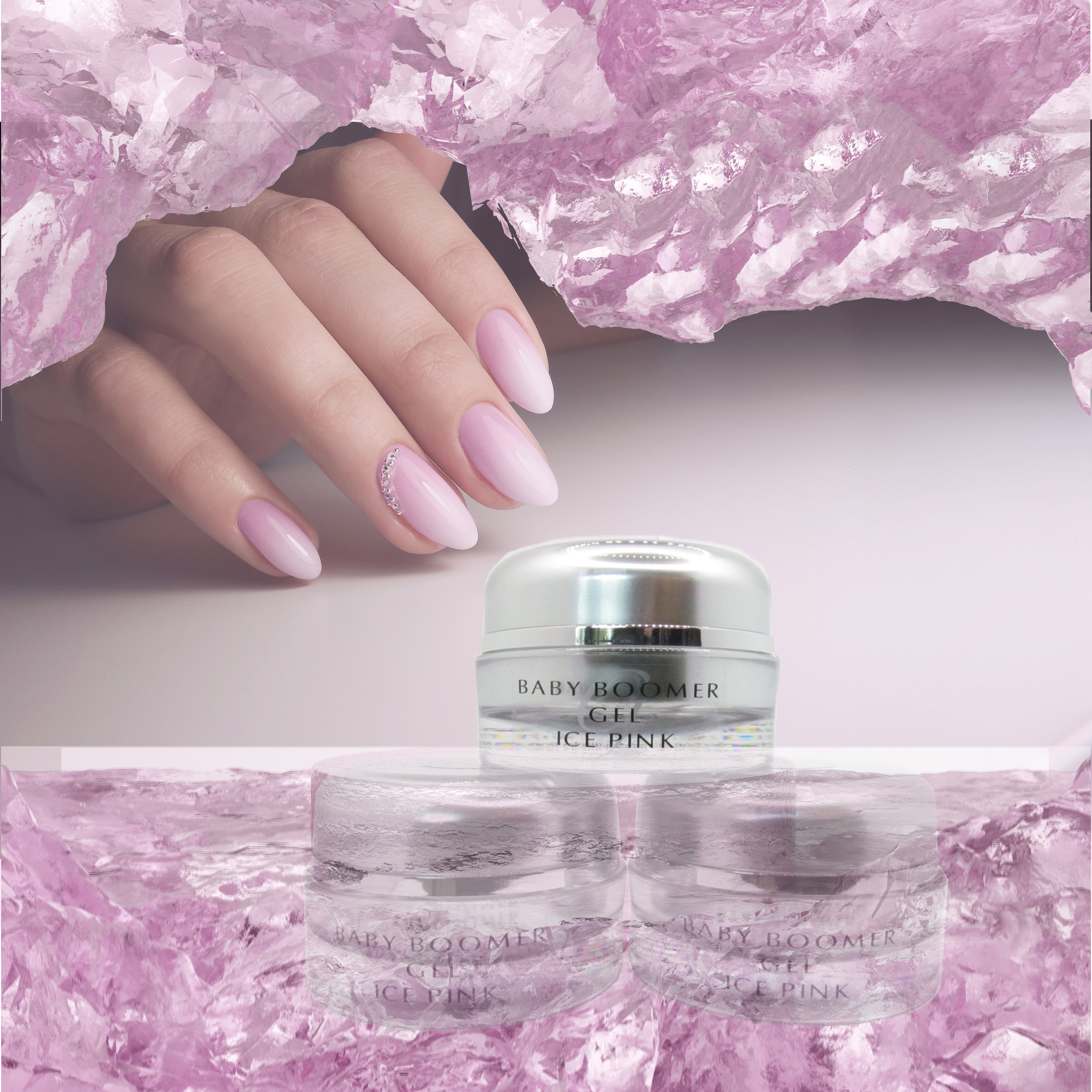 Optimal aufeinander abgestimmte Modellage Gele in weiß, soft-rose, rose und ice pink - für den perfekten Baby Boomer-Look.